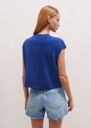Cashmere Relaxed Button-Through Vest Pop Blue