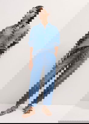 Lightweight Denim Cropped Shirt Washed Mid Blue