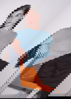 Merino Cashmere Silk Shrunken Baby Tee Chambray Blue