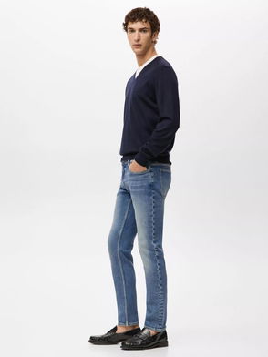 Merino Cashmere Silk V-Neck Straight Baby Tee Deep Blue