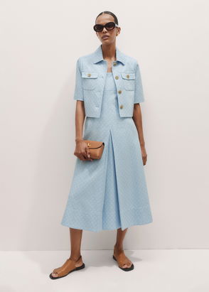 Panel Detail Fit And Flare Short Dress + Tie Light Pop Blue