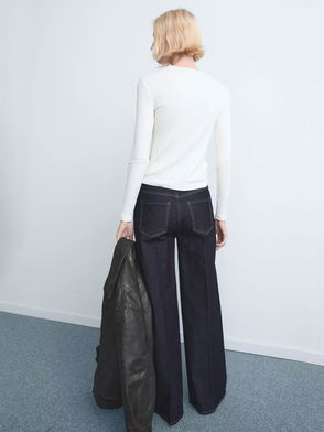 Relaxed Stripe Wide-Leg Jean Mid Blue Wash