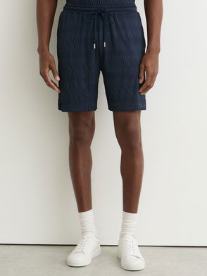 Textured-Wave Drawstring Shorts In Airforce Blue