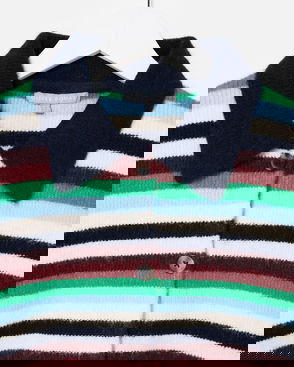 Multicoloured Striped Collared Button Up Knitted Cardigan