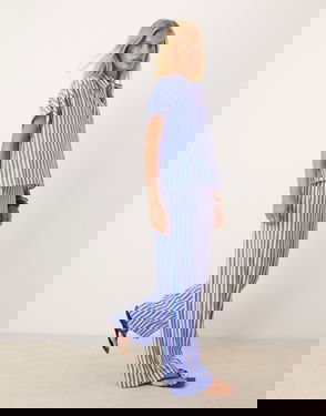 Pull On Cotton Trouser Co-ord In Blue And Pink Stripe