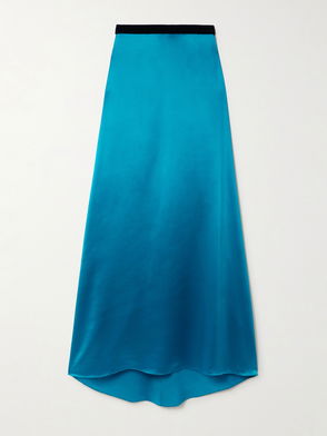 Velvet-trimmed Satin-crepe Maxi Skirt
