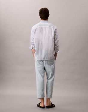 Cotton Seam Front Turn Up Straight Jean In Light Blue