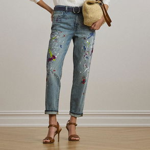 Beaded-Embellishment Printed-Trims Denim Jacket