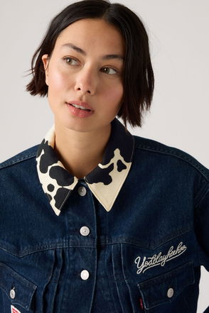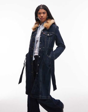 Abercrombie & Fitch Denim Contrast Collar Worker Jacket In Indigo Wash