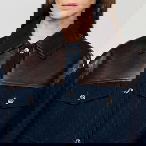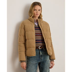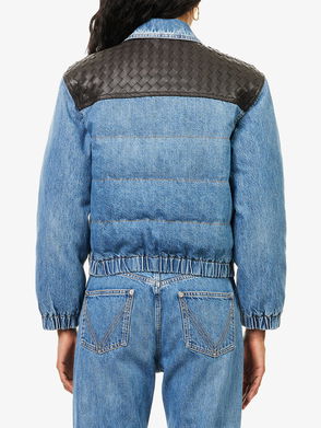 Leather-Panel Regular-Fit Denim-Down Jacket