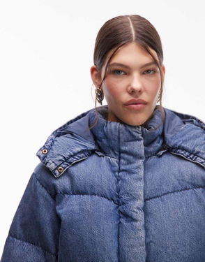 Faux Faur Hooded Down-Filled Fitted Jacket In Blue
