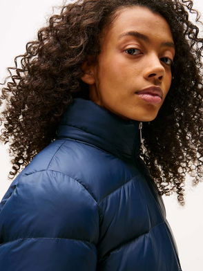 Crest Embroidery Padded Quilted Slim Jacket In Dark Blue