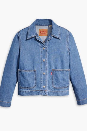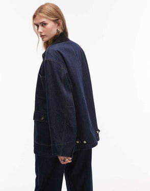 Denim Oversized Workwear Barn Jacket In Rinse Darkwash Blue