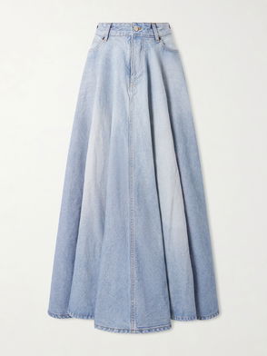 Distressed Cotton-Trimmed Denim Maxi Skirt
