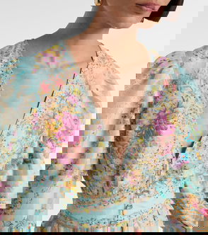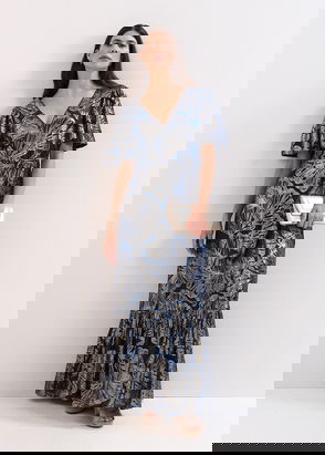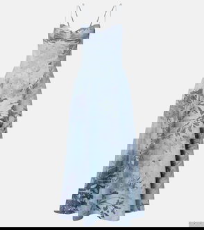 Blues Midi Dress In Black With Blue Floral Jacquard