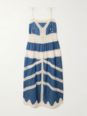 Scarf-Trim Cotton-Blend Rib-Knit Dress