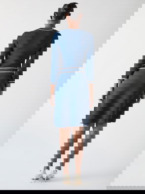 Ciara Viscose Blend Button Through Knit Dress Blue & Navy