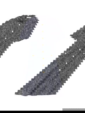 Suzie Indigo & Black & Cream Cotton Blend Tweed Button Through Dress