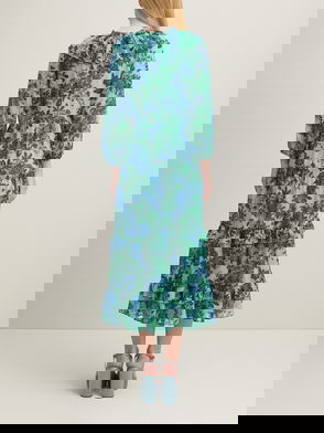 Eleanor Neon Garden Print Recycled Polyester Tiered Dre