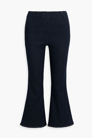 Embellished Leather-Trimmed Mid-Rise Flared Jeans