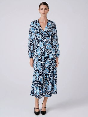 V-Neck Ruffle Botanical Printed Dress With Side Split