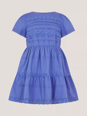 Kids' Broderie Tiered Dress, Blue