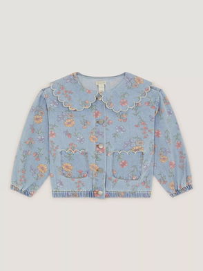 Kids' Floral Scallop Denim Jacket, Blue