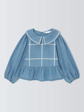 Check Peplum Hem Denim Top, Blue