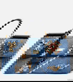 Oak Street Leather Quilted Medium Zip Top Grab Bag, Smoke Blue