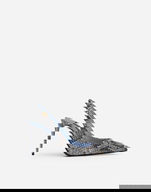 Checkered Block-Heel Ankle-Strap D'Orsay Pumps