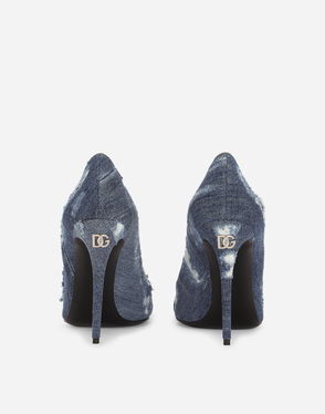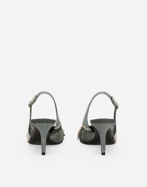 Patchwork Denim Slingbacks With Rhinestone Buckle