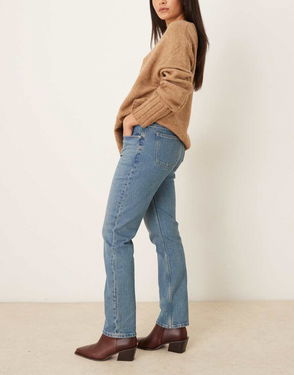 Abercrombie & Fitch Curve Love Mid Rise Straight Jeans In Mid Blue Wash