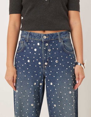 Elina 100% Cotton Straight Leg Jean With Embellishment In Blue