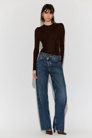 Luna Frayed High-Rise Barrel-Leg Jeans