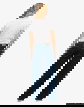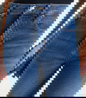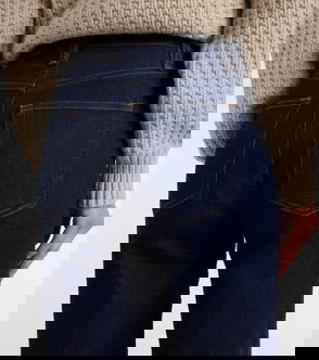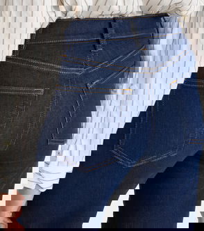 Cotton Mid Rise Flare Jean In Deep Indigo Denim
