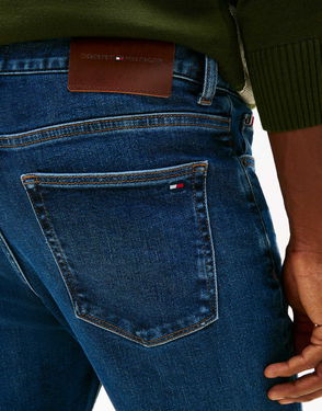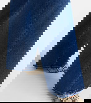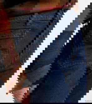 Cotton Mid Rise Straight Jeans In Deep Indigo Denim