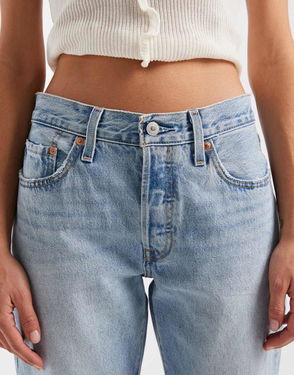 Catherin Cotton Mix Frayed Hem Straight Jean In Mid Blue