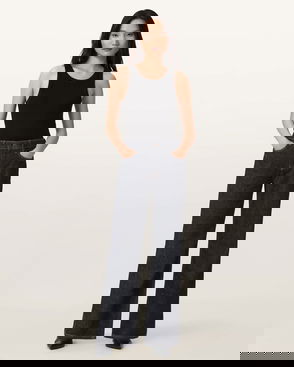 Barrel Leg Jeans With Front Seam And Corset Wait Seam Detail In Clean Blue Wash