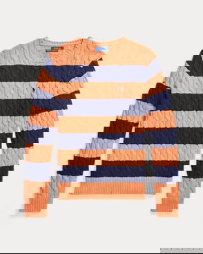 Cable-Knit Striped Cotton Jumper