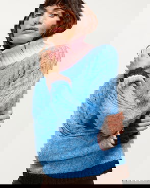 Rib-Knit Button Shawl Jumper In Teal Blue