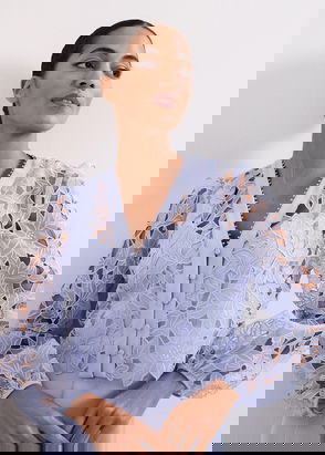 Short Sleeve Printed Playsuit In Tala Tile Border Blue