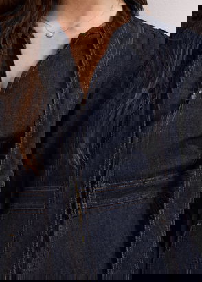 Wide-Leg Zip-Through Denim Jumpsuit In Indigo Blue