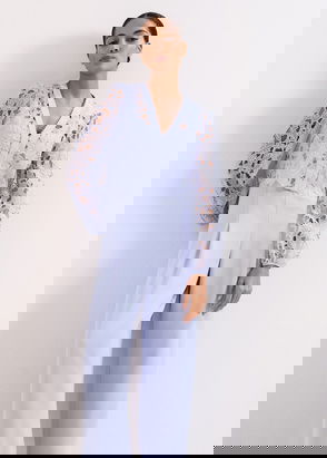 Silk Blend Velvet Dropped Neckline Jumpsuit Bright Evening Blue