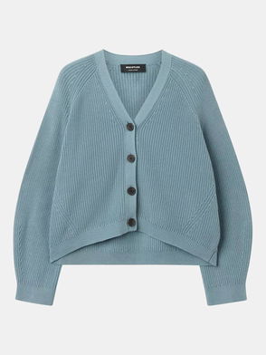 V-Neck Seam Detail Cotton Blend Cardigan, Denim Blue