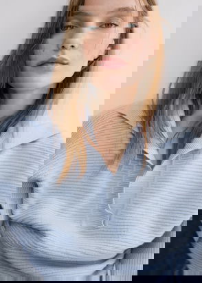 Merino Wool Knit Wide Sleeve Zip Back Top, Pale Blue