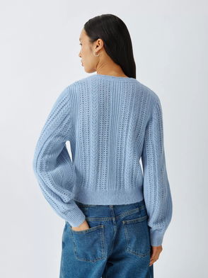 Issie Pointelle Knit Wool Blend Jumper, Light Blue