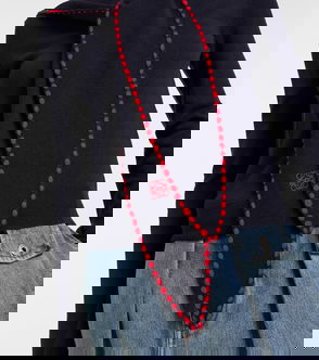 Navy Blue Cherry Embroidered Lined Knitted Jacket