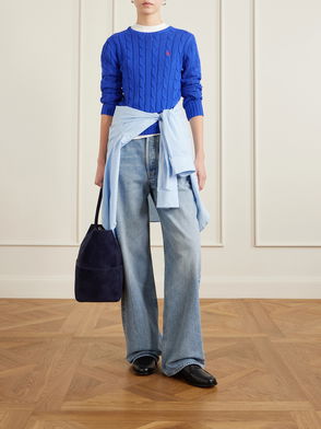 Brand-Embroidered Scarf-Detail Wool-Blend Jumper