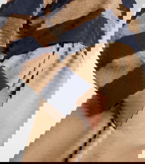 Chocolate Brown & Blue Crew Neck Knitted Cardigan