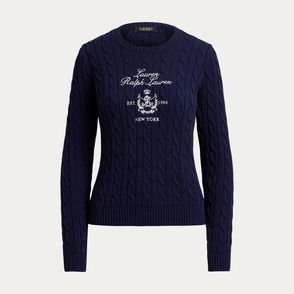 Embroidered-Crest Cable-Knit Jumper